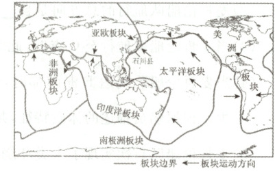 (2024·新疆·中考真题)2024 年 1 月 1 日,日本石川县发生 7.6 级地震,地震导致该地区地壳大幅变动。读“世界六大板块示意图”,完成下面小题。