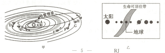 (填名称)。(3)指出乙图中显示“生命可居住带”出现生命的主要影响因素,并说明理由