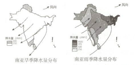 )A.印度旱季受西南季风影响,降水少