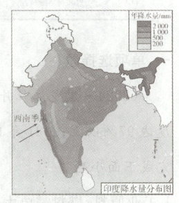 印度粮食是否大丰收与季风活动密切相关,读图回答17~18题。
