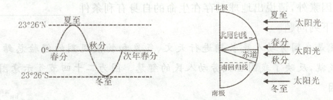 44. 2023年我国完成风云三号G星和F星发射任务,将成为全球唯一同时业务运行晨昏、上午、下午、倾斜四条近地轨道民用气象卫星的国家。小明的家乡在西安($34^{\circ}N$),他对地球公转规律和现象进行了探究,阅读图文材料,完成下列问题。