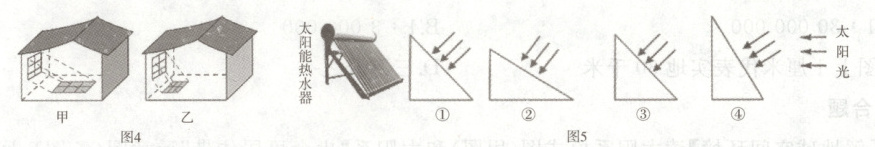 (5)图4中甲、乙两图是齐齐哈尔某教室二至日正午光照示意图,其中代表冬至日的是