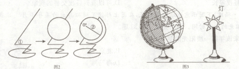 。(4)在一间暗室里,将一盏电灯固定放在桌子上代表太阳,在电灯旁固定放置一个地球仪代表地球,然后拨动地球仪模拟地球运动(如图3)。该实验演示的地理现象有