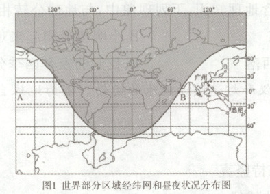 (一)地图知识是学习地理的基础。读图1(注:阴影表示黑夜),完成(1)~(2)题。