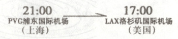 (7)读上海浦东国际机场直飞洛杉矶(西八区)的机票截图如右(注:机票上的时间都是“当地时间”),计算本次航班的飞行时长是