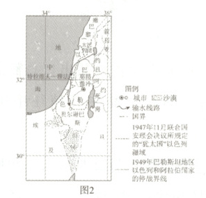 以色列创造沙漠中的农业奇迹,其 50%以上的水来自海水淡化,借助高科技打造出精准农业体系。其南部地区成为世界最发达的灌溉农业区,生产高质量的水果、蔬菜和花卉等农产品,大量出口欧洲。图 2 为以色列分布图,图 3 为以色列精准农业体系示意图。