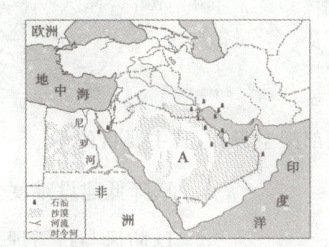 (1)西亚石油资源丰富,图中 A 是重要的石油生产国