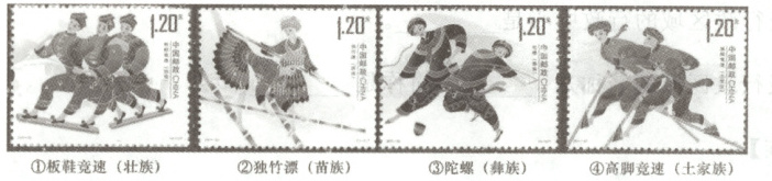 30.(2024 上·湖南岳阳)我国每四年都会举办少数民族运动会,下图是少数民族运动会纪念邮票。图中少数民族与运动项目和省区分布,搭配正确的是 (