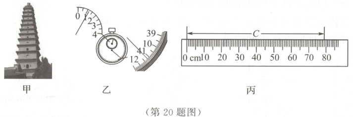 s。小丽想测量小明离塔的距离,先用软尺测出一个轮子的周长C,如图丙所示,记为 79.0
