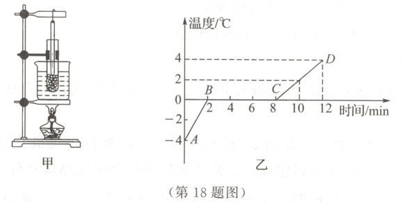 18. (9分)如图甲是“探究冰在熔化时温度变化规律”的实验,根据实验数据画出的图像如图乙所示。