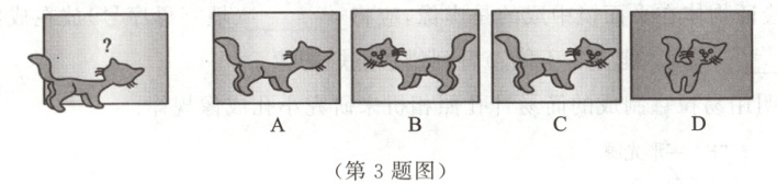 3.如图所示,一只小猫站在平面镜前,此时镜中它的全身像应是(