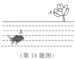 18.请画出鱼在水中$B$点处看到荷花的像$A'$的大致光路图。(保留作图痕迹)