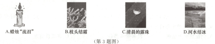 3. 下列物态现象在形成过程中放热且温度保持不变的是