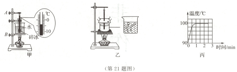 (选填“A”或“B”)的高度;②调节装置后继续实验,并且每隔一段时间记录一次试管中物质的温度及对应状态,此时图甲中温度计示数为