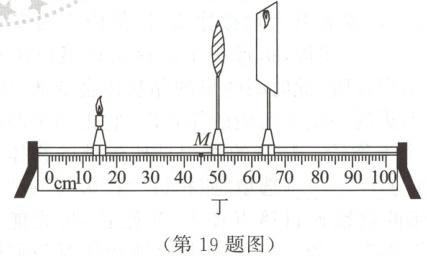 (6)高度调节合适后,把蜡烛移到图丁的M点处,无论怎样调节光屏,光屏上始终接收不到像,是因为此时凸透镜成的是正立、