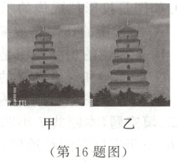 16. 大雁塔屹立在西安已逾千年,国庆假期来西安旅游的小华用照相机记录了这一地标性建筑。照相机的镜头是一个