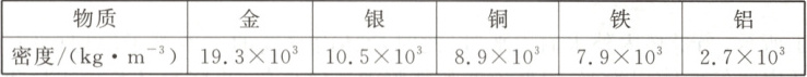 14.在考古活动中挖掘出文物酒杯一件,其表面模糊不清,称出其质量是42 g,测得其体积为$4 cm^{3}$,则该酒杯的密度是