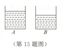 15.如图所示,两个形状相同的烧杯,分别盛有质量相等的水和酒精。根据图中液面的高度和液体密度的知识可知,A液体是