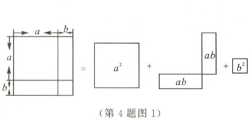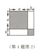 4.【教材原题】观察图1,用等式表示图中图形的面积的运算为$(a + b)^{2}=a^{2}+2ab + b^{2}$。