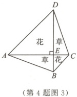 【拓展】(4)如图3,某学校有一块梯形空地$ABCD$,$AC\perp BD$于点$E$,且$AE = DE$,$BE = CE$。该校计划在$\triangle AED$和$\triangle BEC$的区域内种花,在$\triangle CDE$和$\triangle ABE$的区域内种草.经测量,种花区域的面积之和为$109m^{2}$,$AC = 16m$,求种草区域的面积之和.