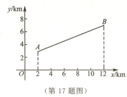 17. (10分)某乡为了解决干旱问题,要在某河道上建一座水泵站,分别向河同一侧的张村A和李村B送水. 经实地勘查后,工程人员设计图纸时,以河道上大桥的位置点O为坐标原点,以河道所在的直线为x轴建立如图所示的平面直角坐标系,两村的坐标分别是点A(2,3),B(12,7).
