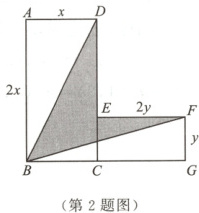②将长方形$ABCD$和长方形$CEFG$按照如图所示的方式放置,点$E$在边$CD$上,连接$BD$,$BF$。若$AB = 2x$,$AD = x$,$EF = 2y$,$FG = y$,求图中阴影部分的面积.
