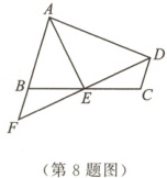 8.如图,在四边形$ABCD$中,$AB//CD$,点$E$为$BC$的中点,且$AE\perp DE$,延长$DE$交$AB$的延长线于点$F.$若$AB = 9$,$CD = 4$,则$AD$的长为 (