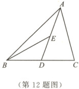 12.如图,在$\bigtriangleup ABC$中,$AD$是边$BC$上的中线,$BE$是$\bigtriangleup ABD$的中线,若$\bigtriangleup ABC$的面积是$24$,则$\bigtriangleup ABE$的面积是
