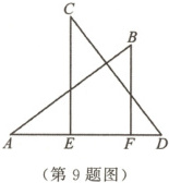 9. 如图,已知AB = CD且AB⊥CD,连接AD,分别过点C,B作CE⊥AD,BF⊥AD,垂足分别是点E,F. 若AD = 10,CE = 8,BF = 6,则EF的长是