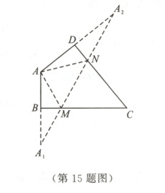 15.$80^{\circ}$ [解析]如图,作点A关于BC和CD的对称点$A_1$,$A_2$,连接$A_1A_2$,交BC于点M,交CD于点N.