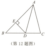 12. 如图,在△ABC中,AD平分∠BAC,DE⊥AB. 若AC = 2,DE = 1,则△ACD的面积是