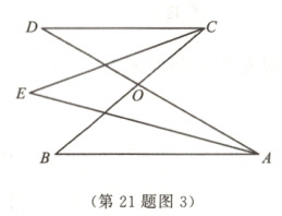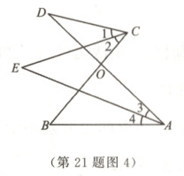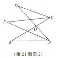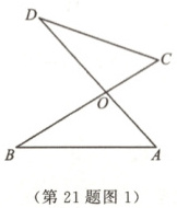 21. (13分)如图1,AD,BC交于点O,连接AB,CD,可以得出两个三角形中的角存在以下数量关系: