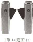 14. 新情境 生活运用 如图1是一个地铁站入口的双翼闸机,它的双翼展开时,双翼边缘的端点$A$与$B$之间的距离是12 cm,如图2,双翼的边缘$AC = BD = 64\ cm$,且与闸机的侧立面夹角$\angle PCA = \angle QDB = 30^{\circ}$.当双翼收起时,可以通过闸机的物体的最大宽度是