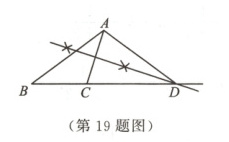 (1)尺规作图:在$BC$的延长线上作点$D$,使$\angle CAD = 2\angle B$.(保留作图痕迹,不写作法)