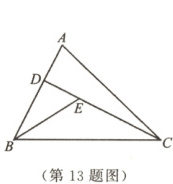 13. 如图,在$\triangle ABC$中,$CD$是$AB$边上的高,$BE$平分$\angle ABC$交$CD$于点$E$.若$BC = 6$,$DE = 3$,则$\triangle BCE$的面积是