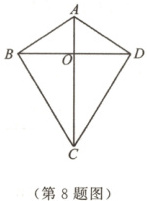 8. 如图,四边形$ABCD$的对角线$AC$,$BD$相交于点$O$,$\triangle ABO \cong \triangle ADO$.下列结论:①$AC \perp BD$;②$CB = CD$;③$DA = DC$;④$\triangle ABC \cong \triangle ADC$.其中正确的是 (