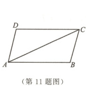 11. 如图,若$\triangle ABC \cong \triangle CDA$,则$AB$与$CD$之间的位置关系是