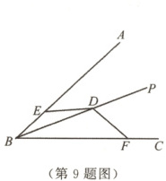 9. 如图,$BP$平分$\angle ABC$,点$D$是$BP$上一点,点$E$,$F$分别在$BA$,$BC$上,且满足$DE = DF$,$BE \neq BF$.若$\angle BED = 140°$,则$\angle BFD$的度数是 (
