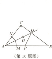 10. ◆2024·本溪期末◆ 如图,在$\triangle ABC$中,$\angle C = 90°$,以点$A$为圆心,适当长为半径作弧,分别交$AB$,$AC$于点$M$,$N$,再分别以点$M$,$N$为圆心,大于$\frac{1}{2}MN$的长为半径作弧,两弧相交于点$G$,作射线$AG$交$BC$于点$D$.若$BD = 5$,$CD = 3$,点$P$是边$AB$上一动点,则$PD$的最小值是 (