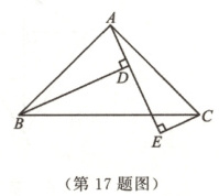 17. (10分)如图,$AB = AC$,$\angle BAC = 90°$,$BD \perp AE$于点$D$,$CE \perp AE$于点$E$.求证:$BD = EC + ED$.