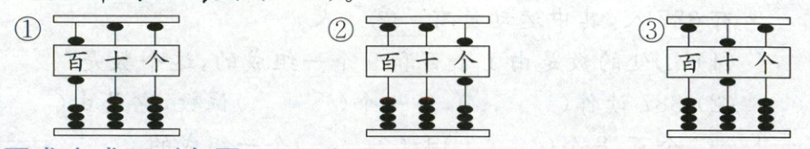 4. 右图计数器上的数在算盘上表示出来,一共要拔(