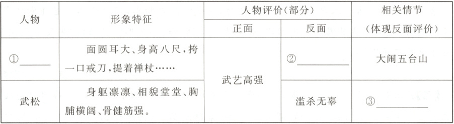 (2)①鲁智深 ②鲁莽急躁 ③示例:血溅鸳鸯楼