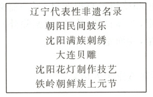 13. ◆新情境◆ 阅读材料四的玉米皮草编案例之后,大连市某中学劳动社团的同学也想设计“劳动+学科”活动,并打算从辽宁非遗中寻找灵感。请你从下面的名录中选择一项非遗,帮助他们设计两个适合初中生参与的学科活动。(4分)