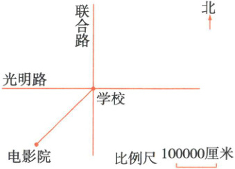 (2)通过测量可知,电影院到学校的图上距离是2厘米。