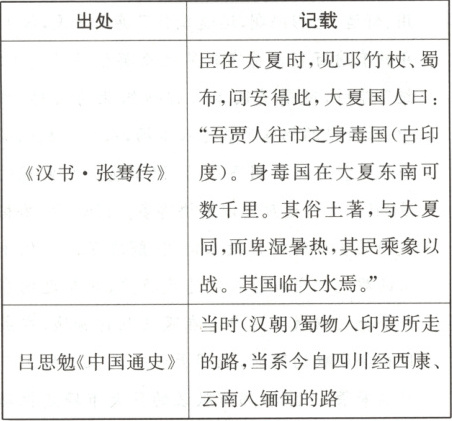 1. (2025·河南百师联盟联考)下表是关于蜀身毒道(西南丝绸之路)的一些记载。据此可以推断出(
