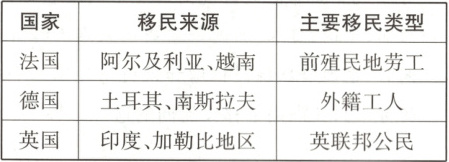 13.C 解析:二战后随着经济全球化进程加快,世界经济联系加强,西欧各国经济发展需要大量劳动力,促使不同地区人口迁入,如法国有前殖民地劳工、德国有外籍工人等,这是受到经济全球化的影响的结果,故选C项。
