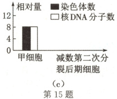 。(3) 请在图(c)相应位置绘制柱形图,表示甲种动物减数第二次分裂后期细胞中的染色体数和核$DNA$分子数。