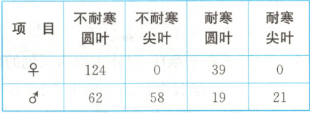 D.若$F_1$中的不耐寒圆叶雌株与不耐寒尖叶雄株杂交,则$F_2$不耐寒雌性个体中杂合子所占的比例为$31/36$