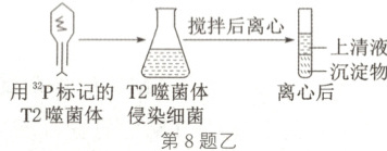 (2) 如图乙为 T2 噬菌体侵染大肠杆菌实验的部分步骤和结果,请据图回答下列问题: