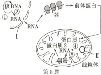 8.(2025·江苏徐州期中)如图为某种生物细胞中有关物质合成的示意图,①~⑤表示生理过程,Ⅰ、Ⅱ表示结构或物质。据图分析回答: